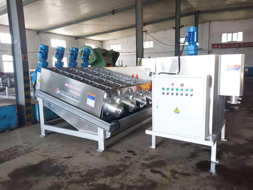 疊螺式污泥濃縮機主體是由固定環(huán)和游動環(huán)相互層疊,螺旋軸貫穿其中形成的過濾裝置。前段為濃縮部,后段為脫水部。